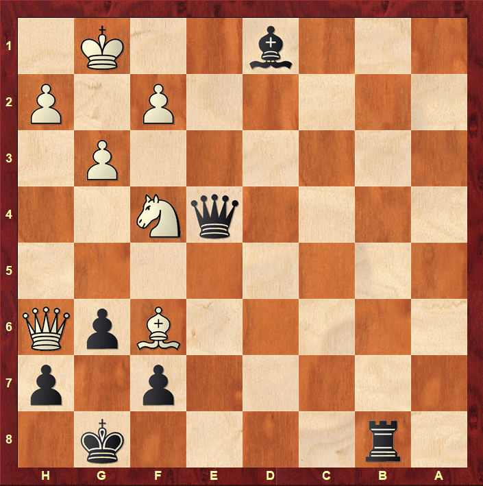 Nf6 Kh8 Qg7 Kg7 Ne8 Fork wins an extra piece for white